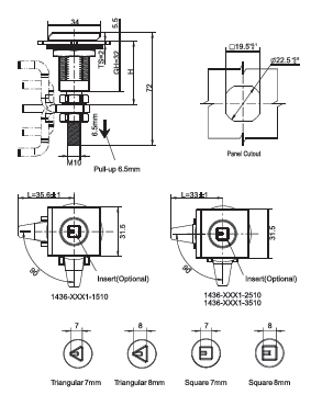 Compression Latch 1436 Series, Square Insert,Large Version,Insert Without Circle,Adjustable Grip Range Forward: 11.4-27.2mm, Reverse: 66.3-76.2mm Product Data Sheet