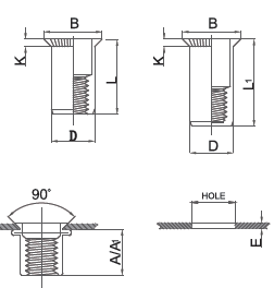 Thread Grip Range (E) A Hole (+0.1) D (+0.07 -0.1) B (±0.3) K(±0.15) L(±0.3)