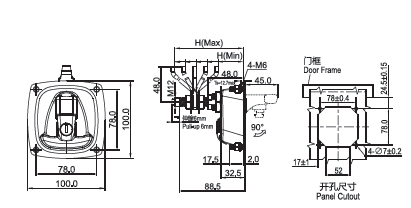 Paddle Latch 1704 Series With Cam ,Grip Range Forward: 43-58mm, Reverse: 73-88mm Product Data Sheet