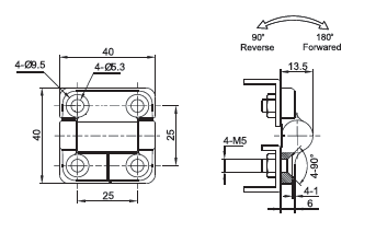 | 2136-4100-20 | Free Swinging | Mounting Studs M5 | Zinc Alloy | Black Textured Powder Coated |