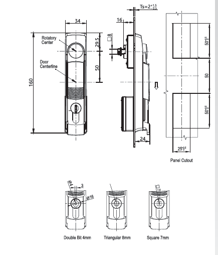 1102-1P03-NC  PA6 Housing, Zinc Die Handle  Square 7mm  Without
